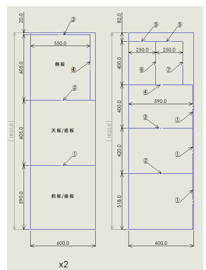 参考に私が持って行った図面を掲載します。番号はカットしてほしい順番です。この順番通りにカットされたのかはわかりませんが、効率よくカットするならこの順番がいいかなということで書いています。