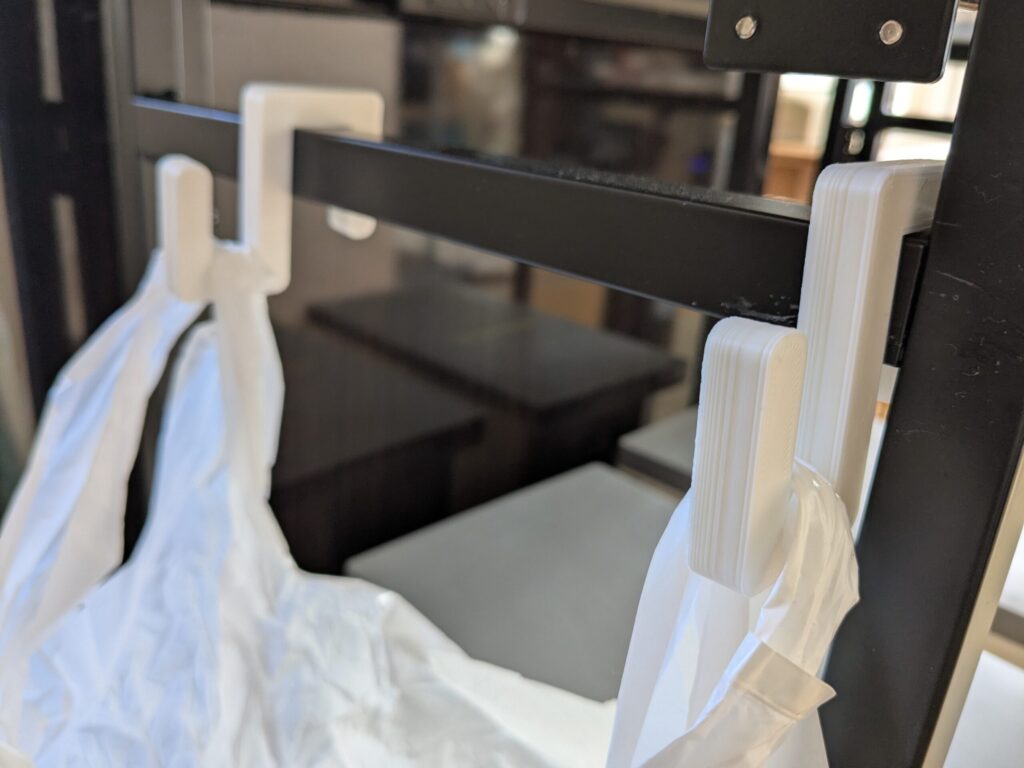 そんな状況を打破するために、3Dプリンターでバッグハンガーを自作しました。