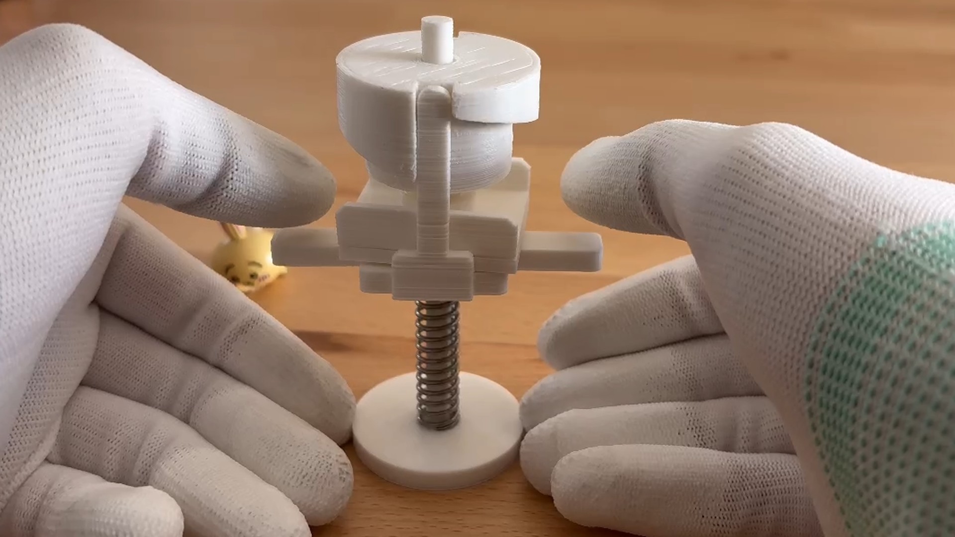 上下方向の動きを回転運動に変換する「からくり構造」を3Dプリンターで作ってみた