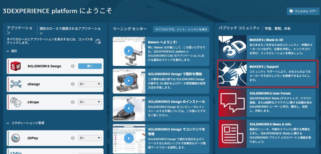 SOLIDWORKS for Makersでトラブルが発生したときは、3DEXPERIENCE プラットフォーム内にあるコミュニティサイトを確認してみましょう。