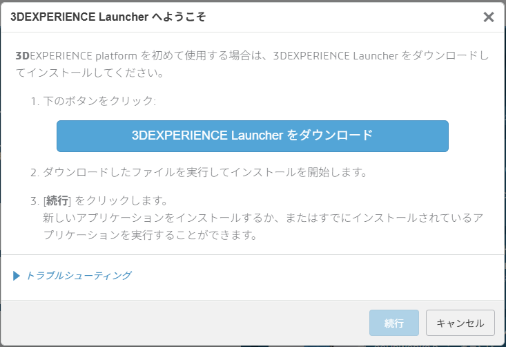 3DEXPERIENCE Launcherダウンロードのループ